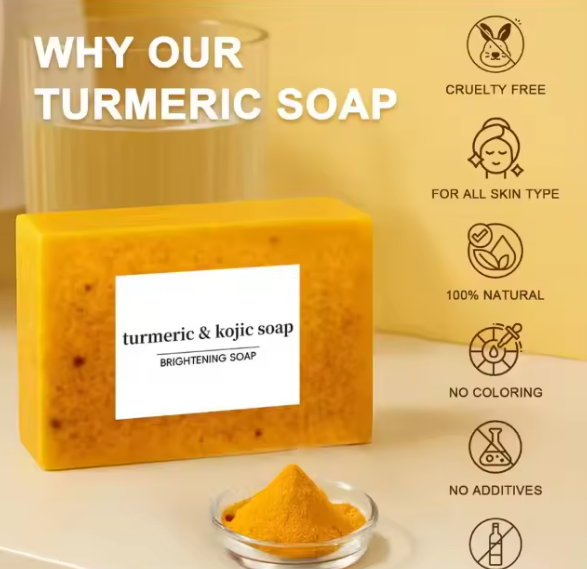 Sapone Sbiancante alla Curcuma e Acido Kojico 100g, Sapone Solido Fatto a Mano Delicato per Tutti i Tipi di Pelle, Sapone per Viso e Corpo Femminile
