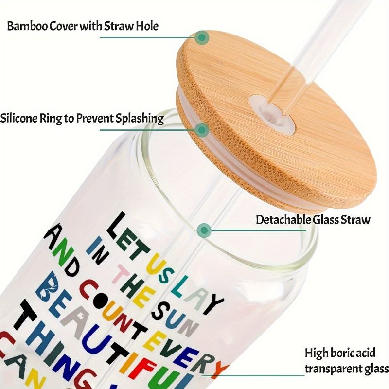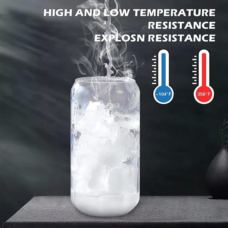 USA WAREHOUSE 16OZ Beer Glasses Iced Coffee Drinking Glasses Can Shaped Glass Cups Tumbler with Bamboo Lid and Glass Straw