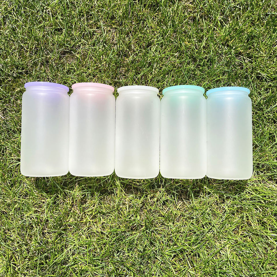 Magazzino USA Tazza da Caffè Ghiacciato 16oz per Sublimazione con Coperchio in Plastica Colorato e Cannuccia per Stampa a Caldo
