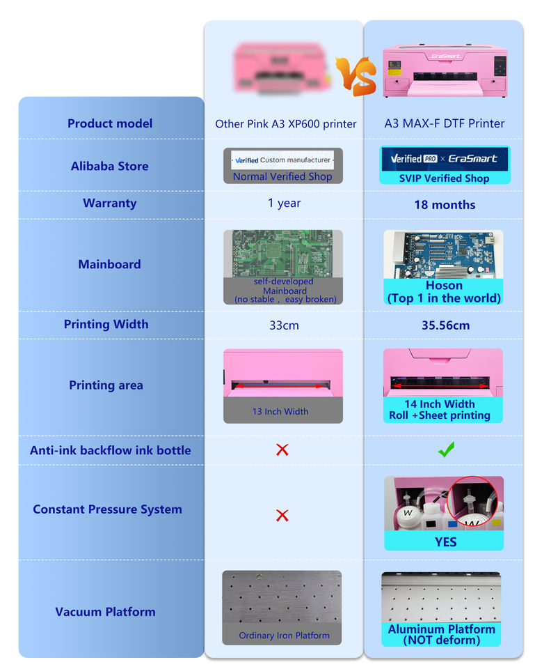 Stampante DTF EraSmart 350 A3 Rosa con XP600, Stampante DTF da 13 Pollici con Agitatore e Forno Essiccatore per Qualsiasi Tessuto, Magazzino USA