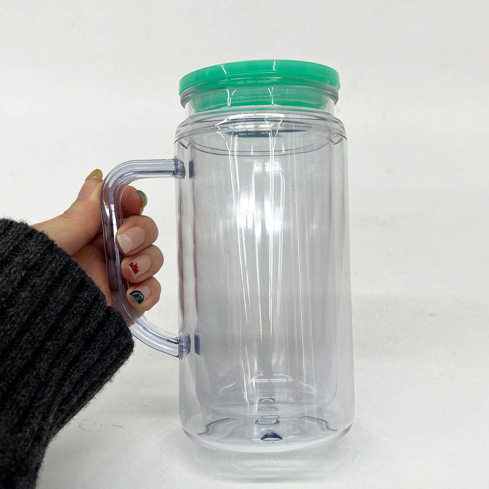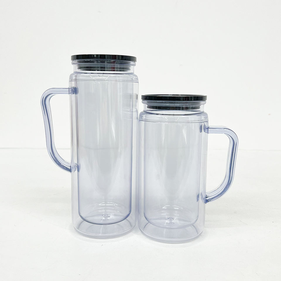USA Warehouse Reusable Pre Drilled 12oz 16oz UV DTF Wraps clear Acrylic Snow Globe Can Coffee Travel Beer Mugs Can with Handle