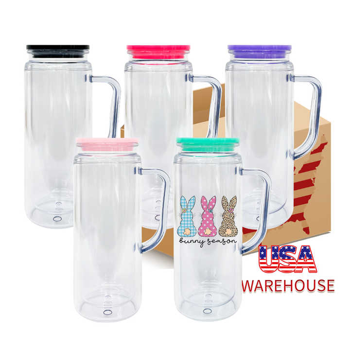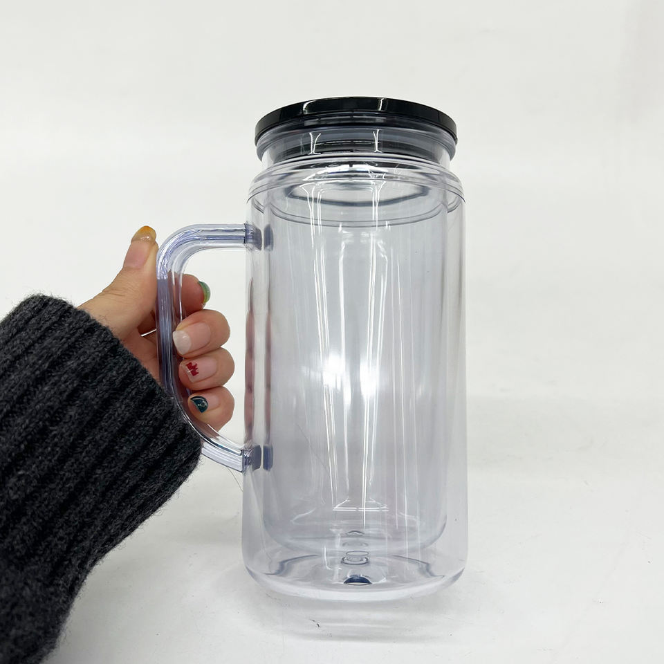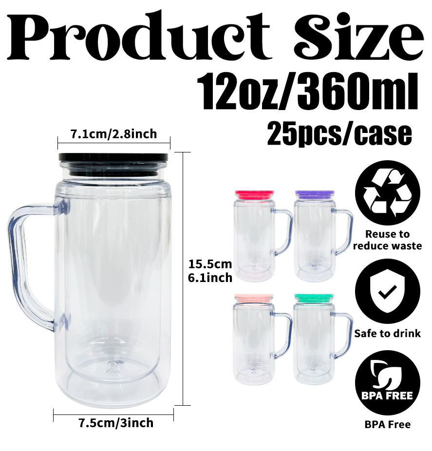 USA Warehouse Reusable Pre Drilled 12oz 16oz UV DTF Wraps clear Acrylic Snow Globe Can Coffee Travel with Handle and Plug