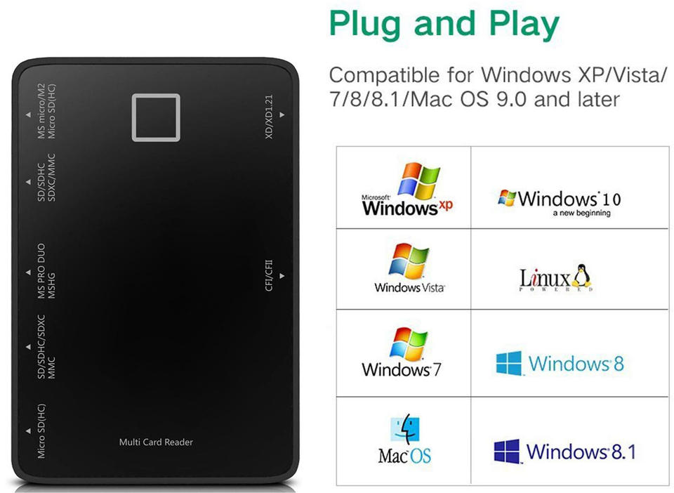 Lettore di schede USB 3.0 5 in 1 con indicatore LED supporto per velocità di trasporto da 5 Gbps lettura di 5 schede contemporaneamente lettore di schede
