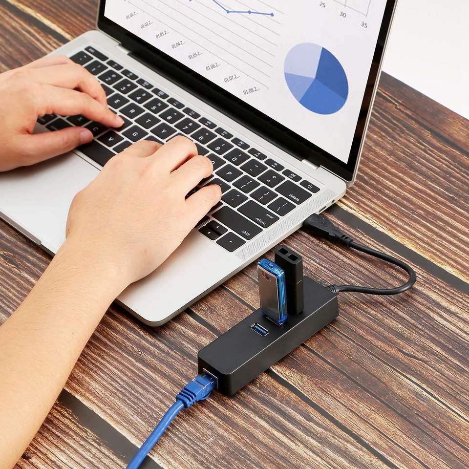 Hub USB 3.0 con 3 Porte, Adattatore Ethernet Gigabit 10/100/1000 Mbps, Convertitore LAN RJ45, Adattatore di Rete USB Cablato