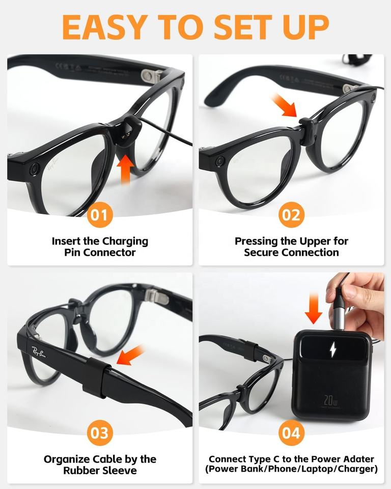 Cavo di ricarica USB-C per RayBan Meta-2 AI occhiali intelligenti 1.5M linea di alimentazione di estensione portatile per Wayfarer/Skyler/Headliner