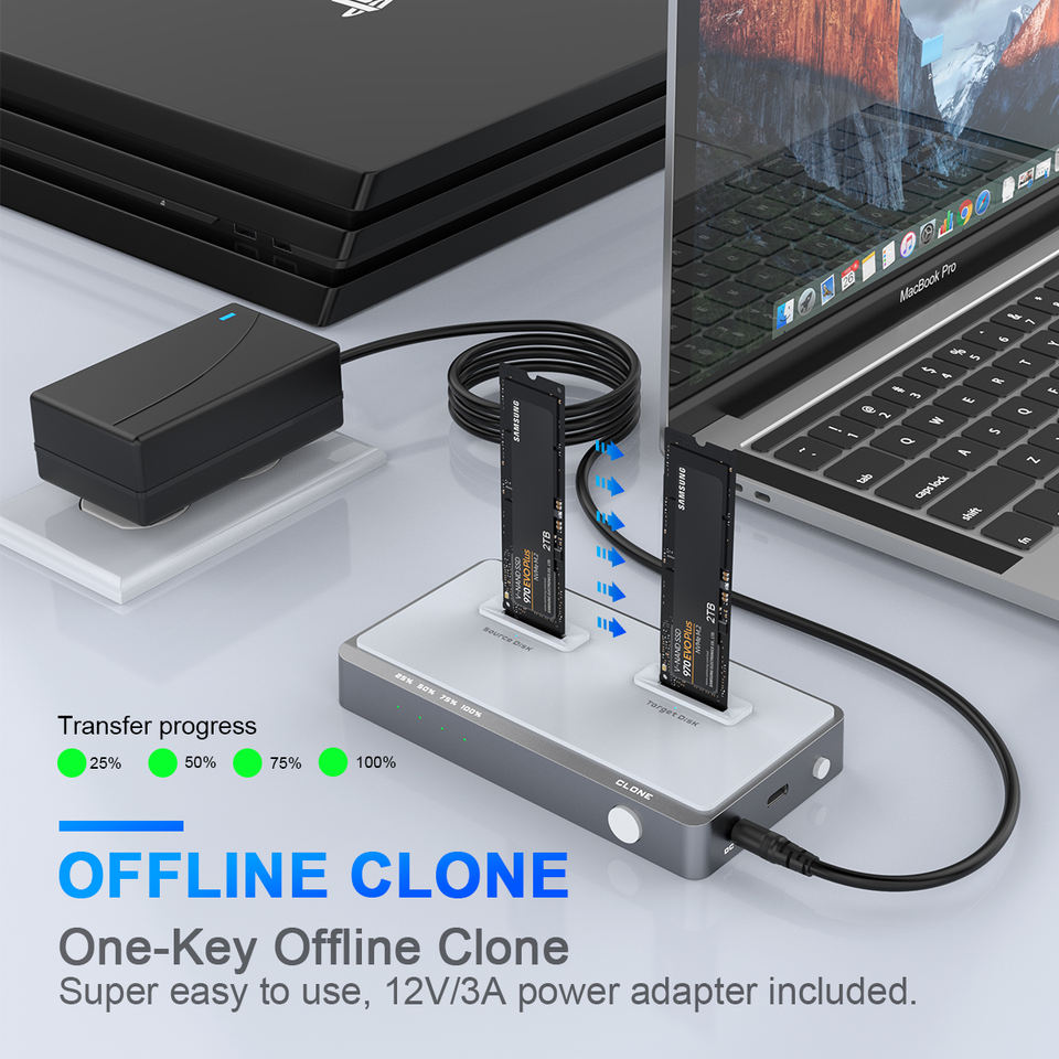 Dettagli della confezione:USB C Dual-Bay NVME Docking Station Tool-Free C a Offline Clone Duplicatore M.2 per M2 SSD tasto M SSD