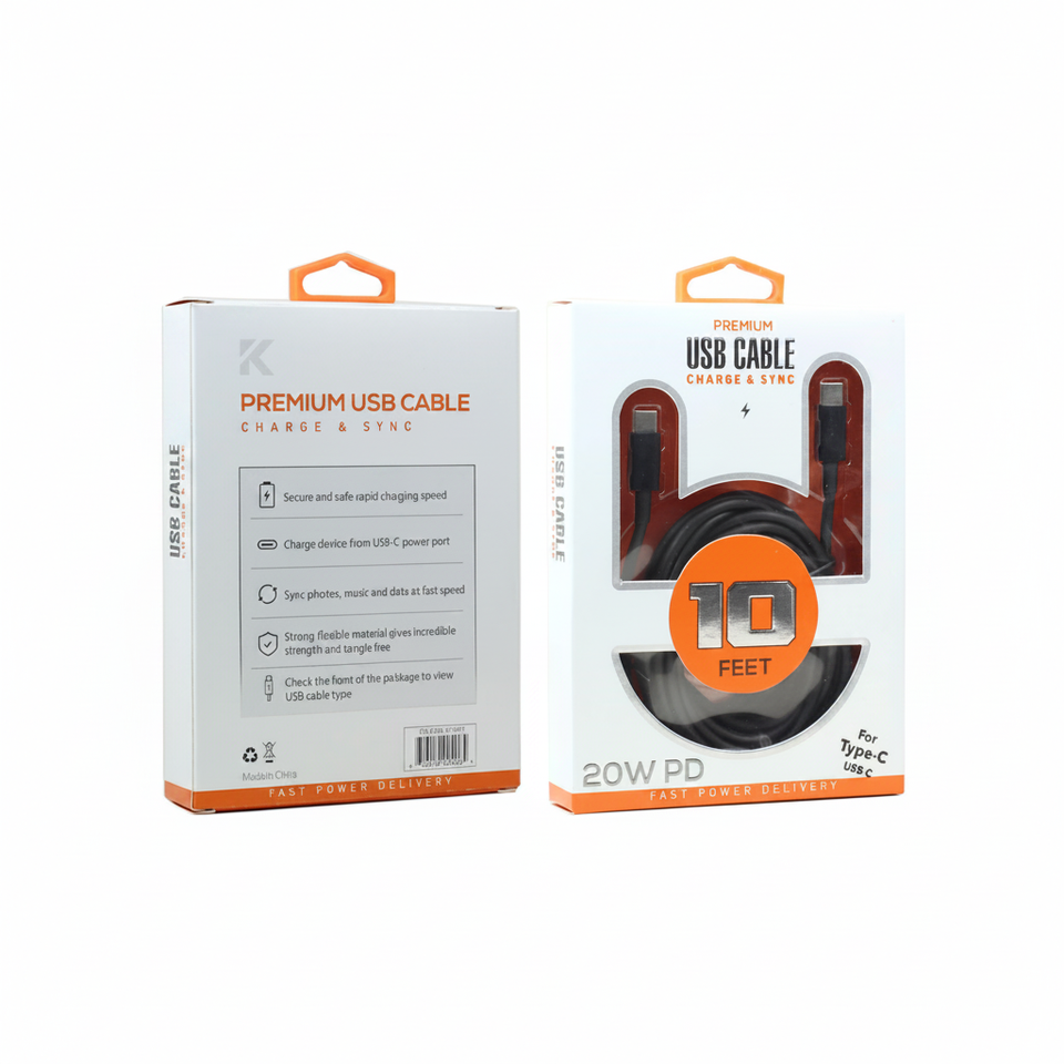 USB-C to USB-C 20W PD Fast Charging Cable 10FT Compatible with Universal Phone and Tablet Models