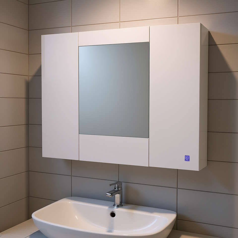 Bathroom Mirror Cabinet 35.5W X 25.5H White With USB Charging Wall Hanging Storage Cupboard