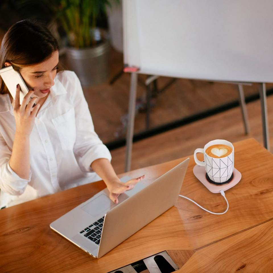 Scaldatazze Elettrico USB con Spegnimento Automatico, 3 Impostazioni di Temperatura per Ufficio, Ideale per Riscaldare Tè, Latte o Bevande