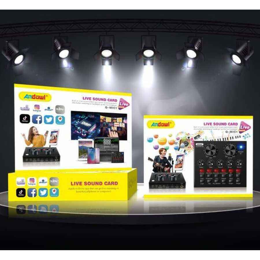 Scheda audio esterna USB Andowl Live Sound Card Q-MIC1 per computer, telefono, streaming e broadcasting