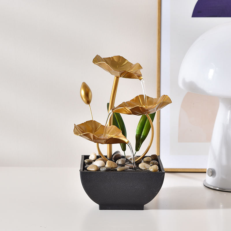 USB alimentato relax in metallo decorativo acqua interna fontana tre strati di loto per ufficio casa e camera da letto