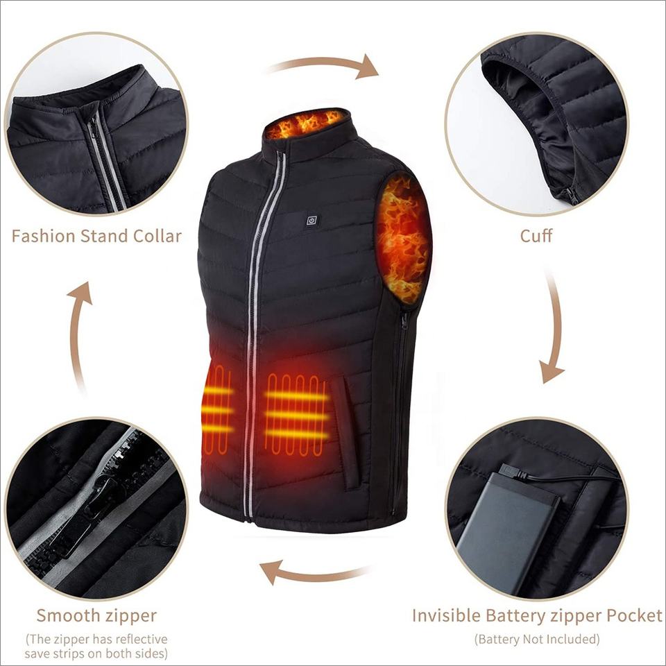 USB Rechargeable Breathable Heated Vest Body Warmer Waistcoat with V-Neck Collar Autumn Mens/Womens Outerwear for Motorcycle Use