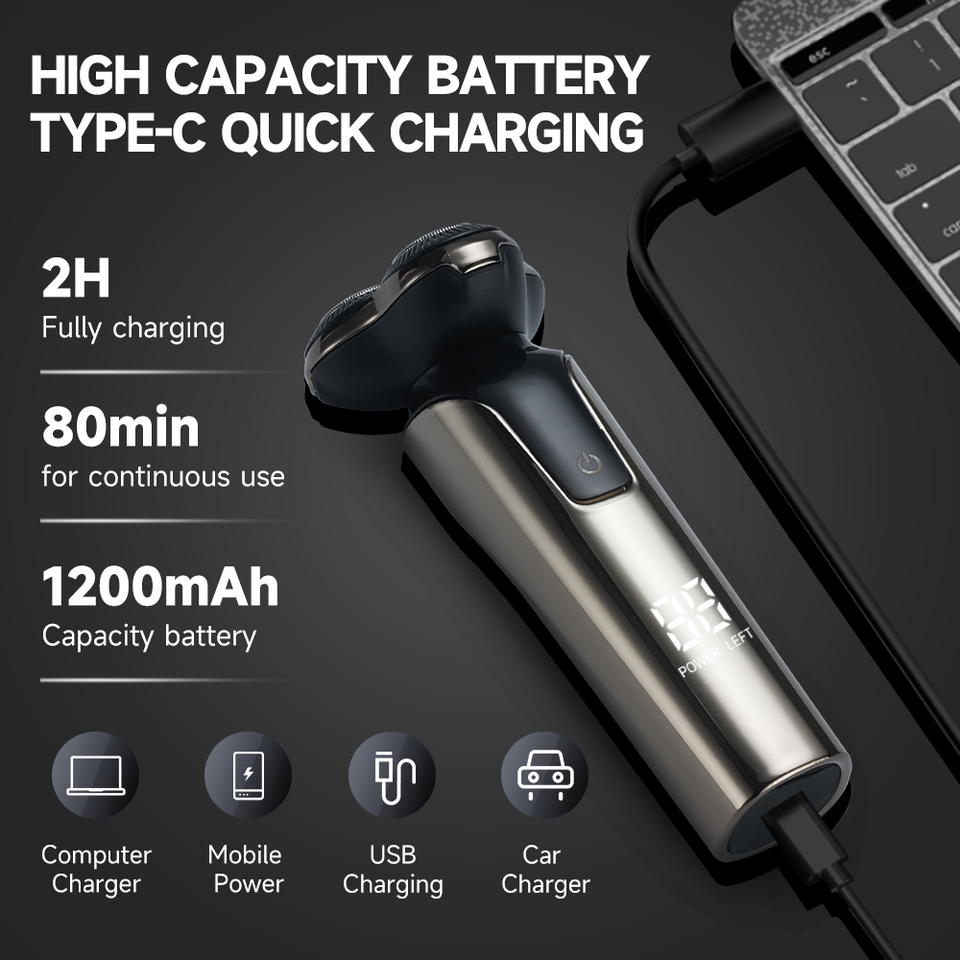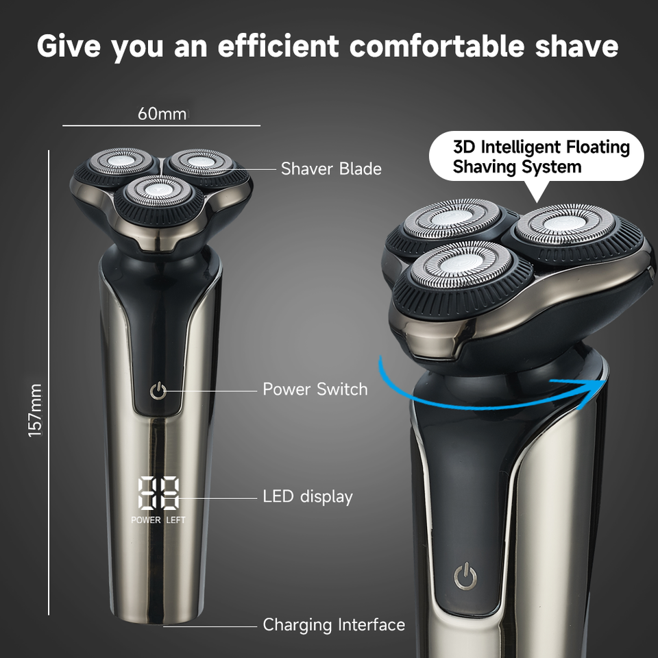 Rasoio Elettrico Ricaricabile USB con Display LED, Impermeabile IPX6, Flessibile, OEM