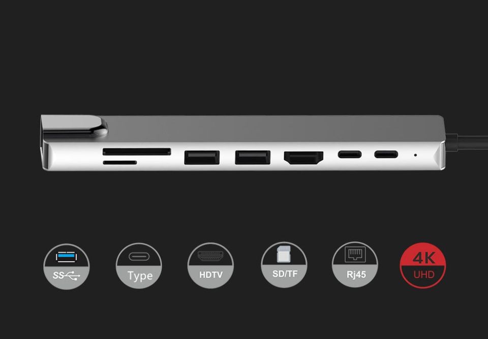 USB tipo C Hub 8 in 1 USB 3.0-C Hub 4K HDMI portatile PD ricarica rapida Docking Station adattatore multiporta