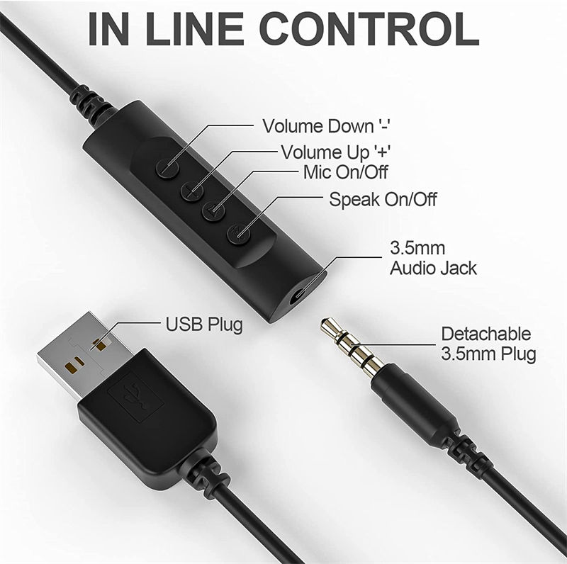 Cuffie Cablate USB da 3,5 mm Sovraurali per Computer con Microfono Mute, Headset per Call Center, PC, Skype e Laptop