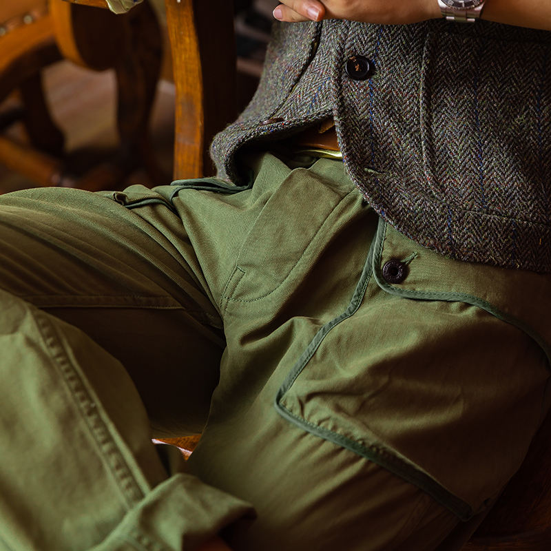 Pantaloni Utility USMC P44 Verde Salvia da Uomo, Stile Vintage in Cotone con Tasche Multiple, Pantaloni Larghi Retrò Americani Verde Stile Vintage