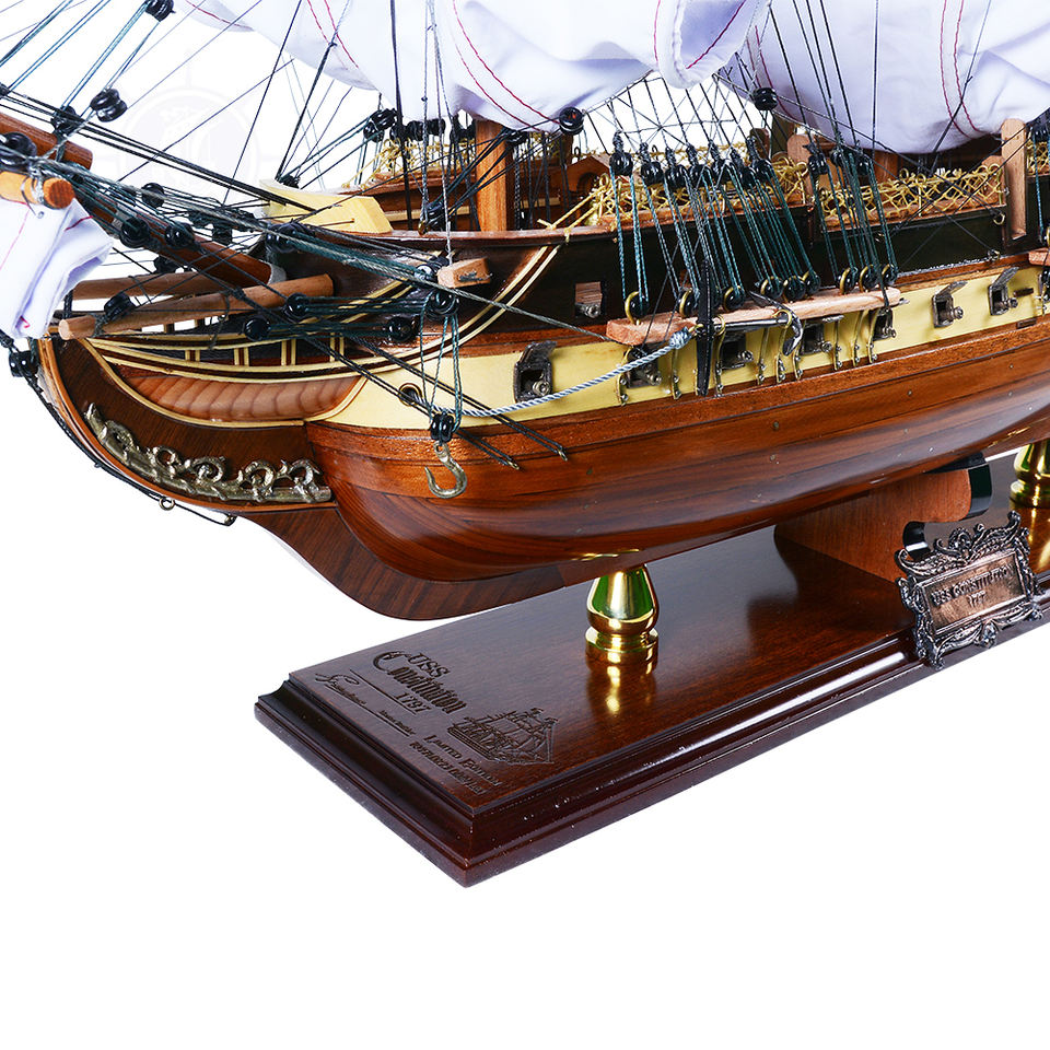 Modello Nautico USS Constitution L73cm Edizione Limitata in Legno di Cedro Ecologico con Vele Curvate Dipinte, Decorazione per la Casa in Stile Vietnamita
