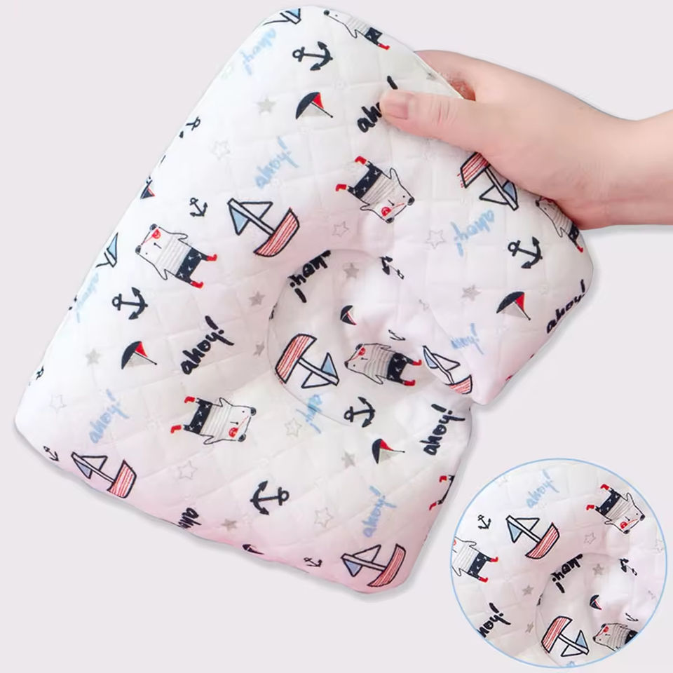 USSE personalizzato cotone biologico Comfort Memory Foam a forma di U testa per neonato neonato cuscino 100% cotone forniture per bambini