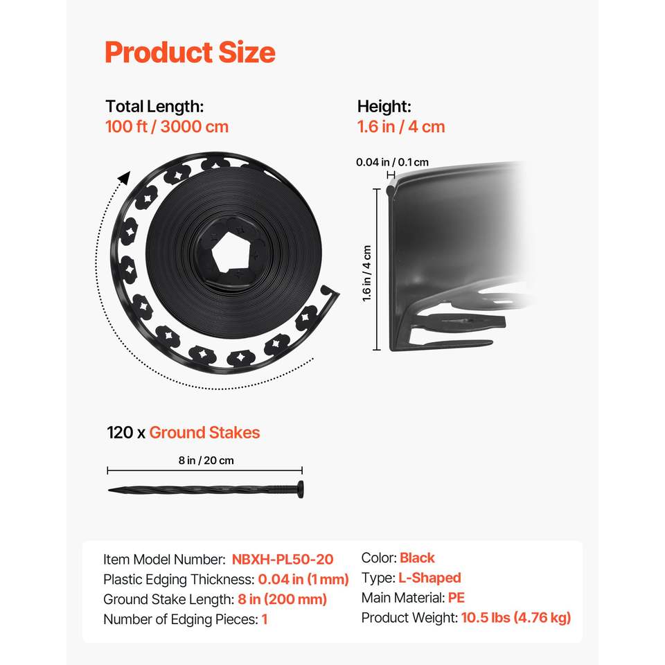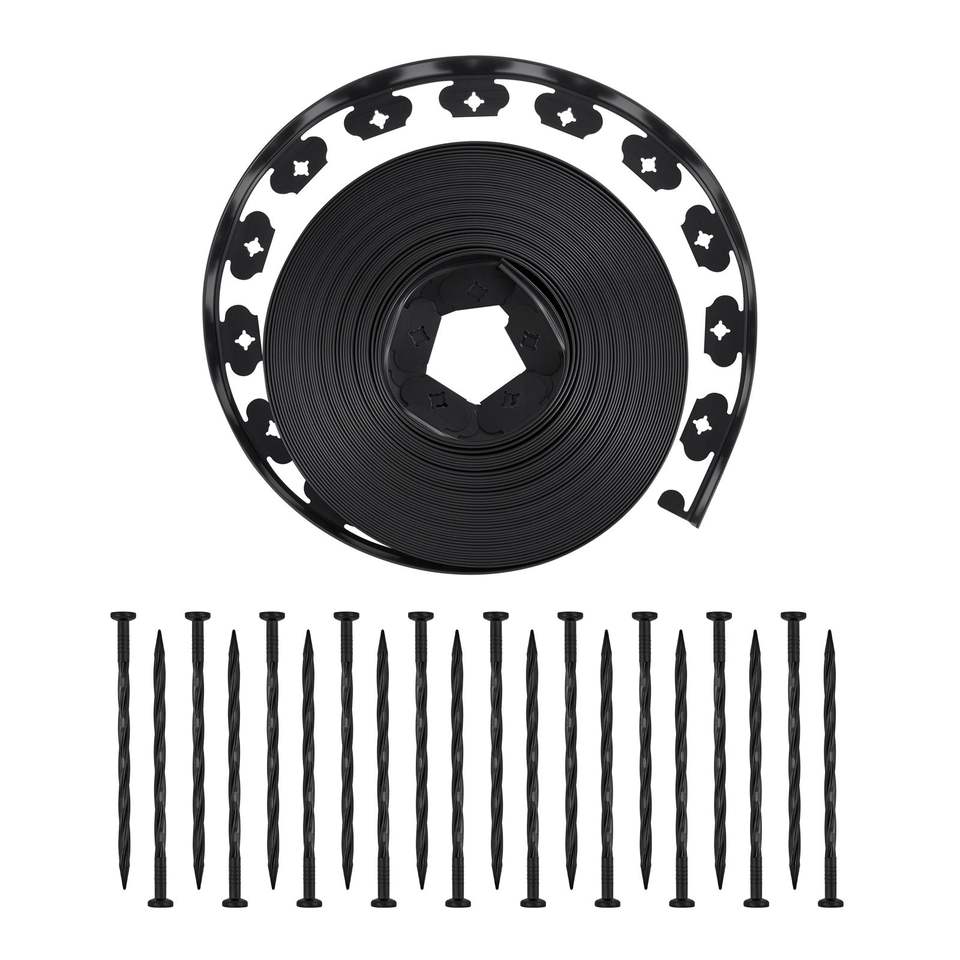 Bordo per Giardino in Plastica Anti-UV 30,5 m x 1,5 m, Rotolo Flessibile Senza Scavo per Bordatura Prato, 120 Picchetti, Bordatura Paesaggistica per Piante Artificiali