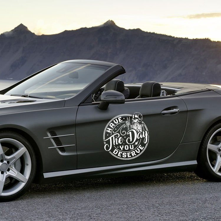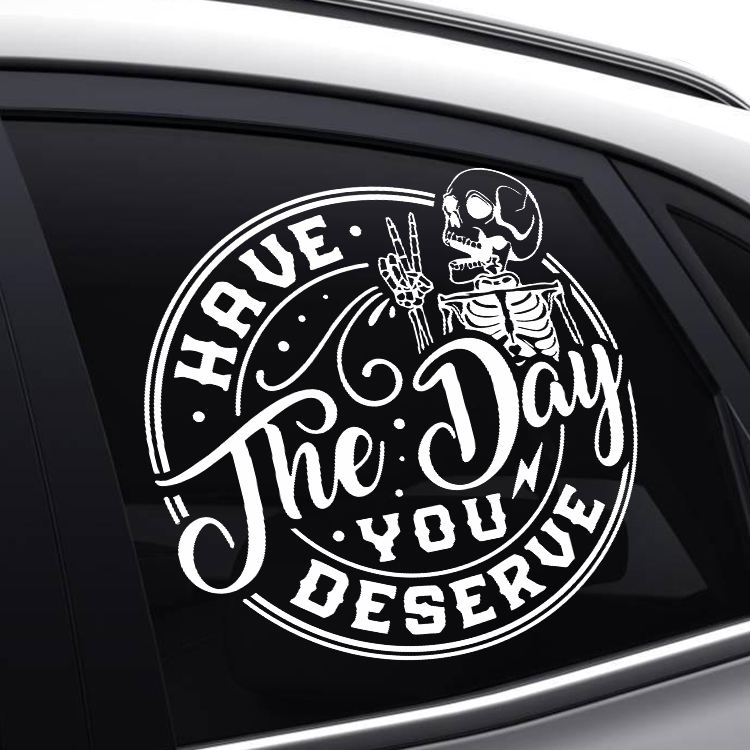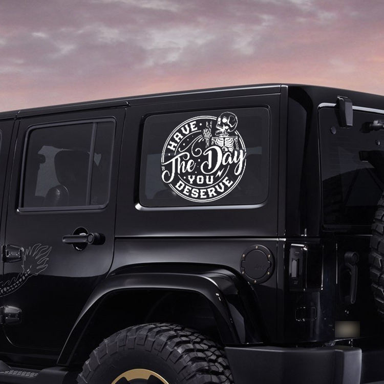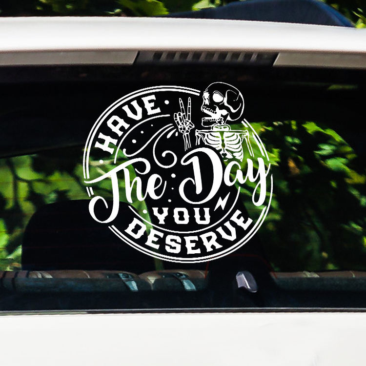 Impermeabile resistente UV ha il giorno in cui meriti la stampa di auto personalizzato parabrezza per paraurti da finestra divertente adesivo con scheletro