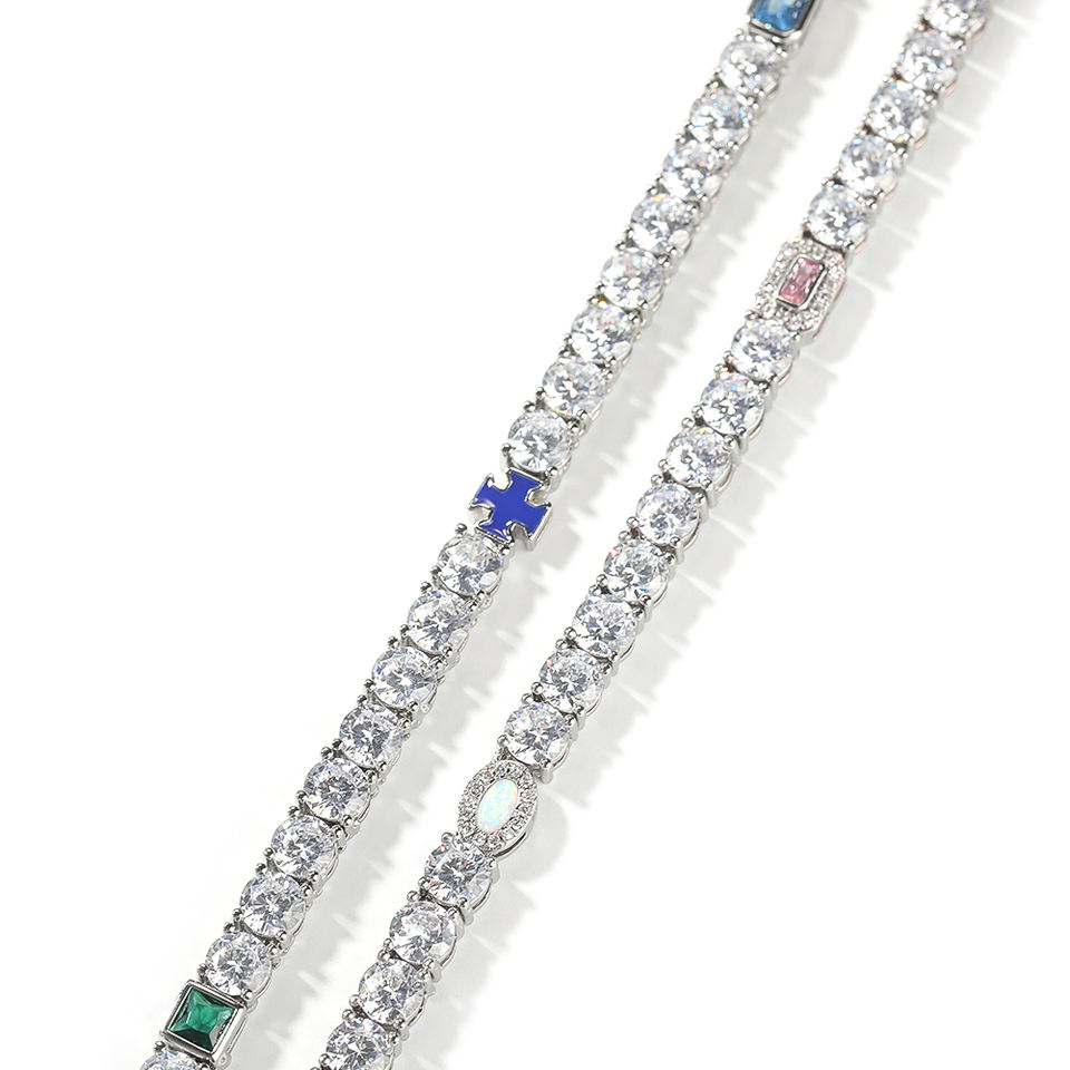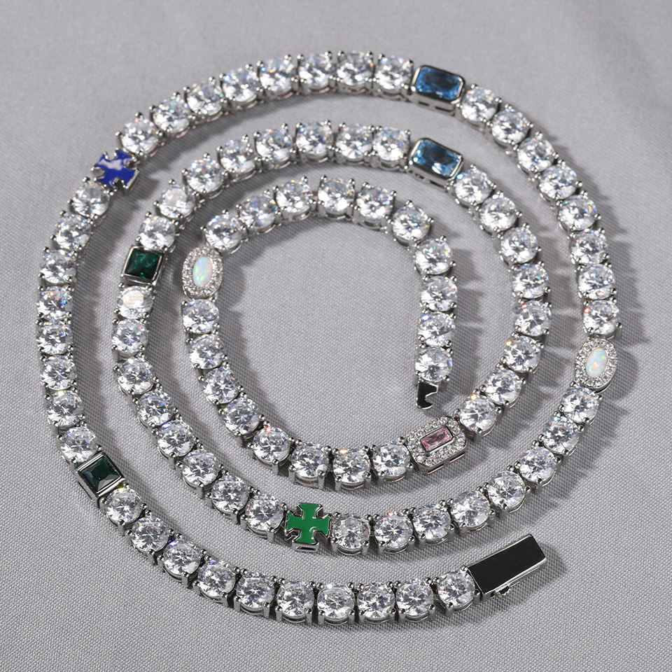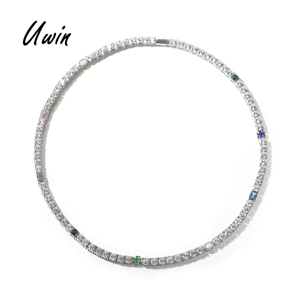 UWIN Hip Hop 5mm catena da Tennis misto colorato smalto croce opale pietre verde smeraldo Zirconia uomini donne collana girocollo