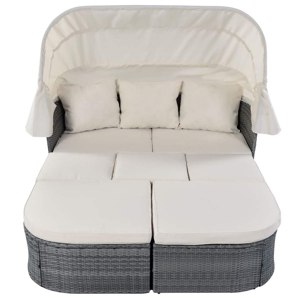 Set di mobili da giardino per esterni U_STYLE divano letto a baldacchino retrattile Set di conversazione in vimini (come WY000281AAE)