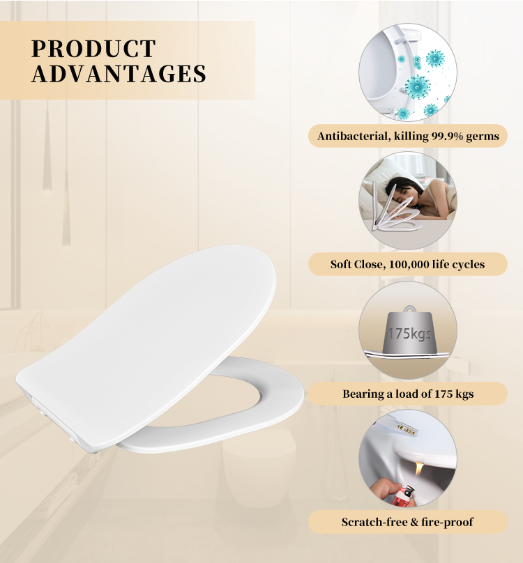 Coprisedile del water Anti-batteri allungata lenta stretta Urea Uf