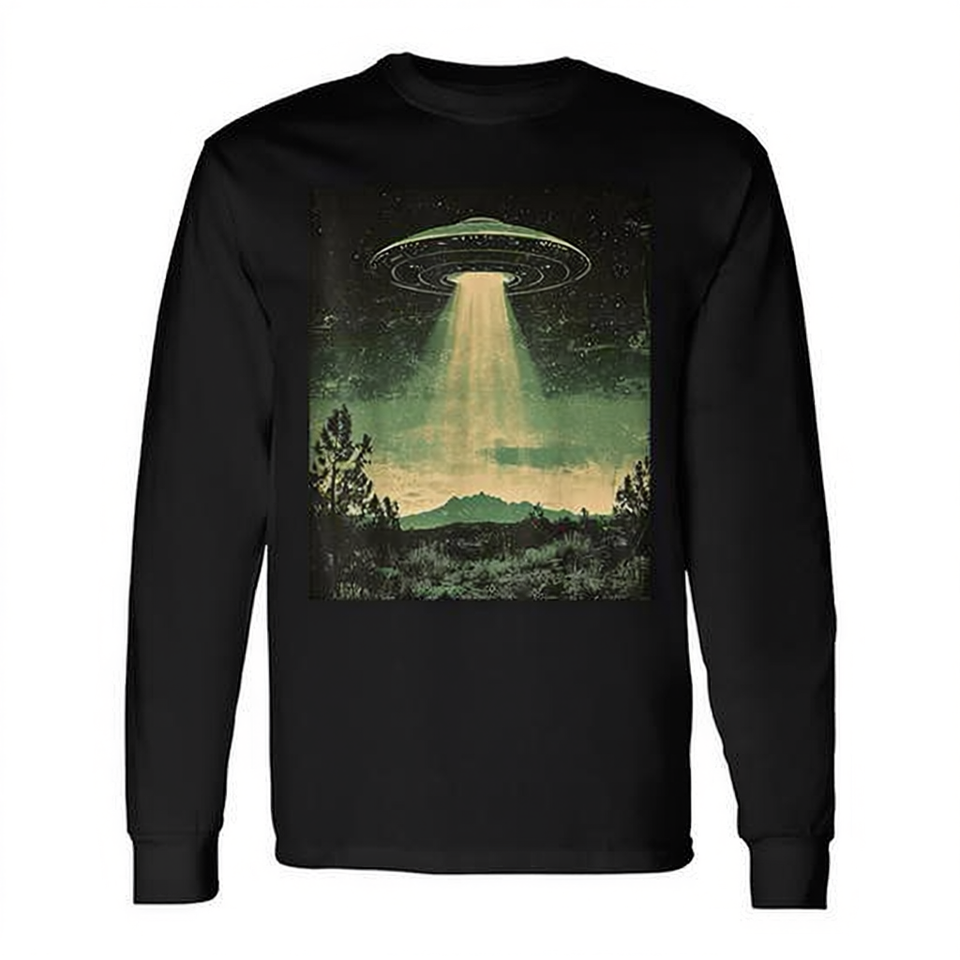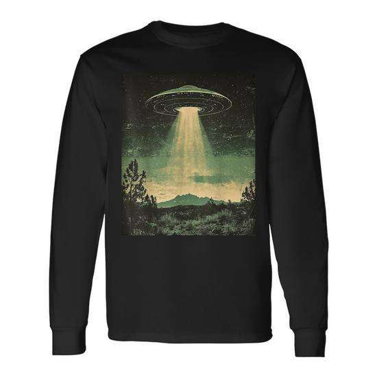 T-shirt a maniche lunghe Ufo Alien Spaceship Design spaziale Ufologia Astrobiologia
