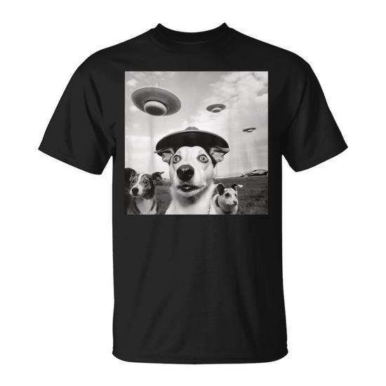 T-shirt Ufo Dog Alien Spaceship, maglietta promozionale da uomo nera
