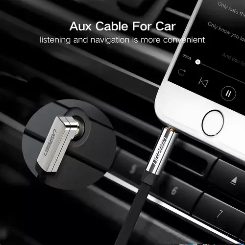 Ugreen Flat Auxiliary Cable 2m. Black 3.5mm to 3.5mm Connector