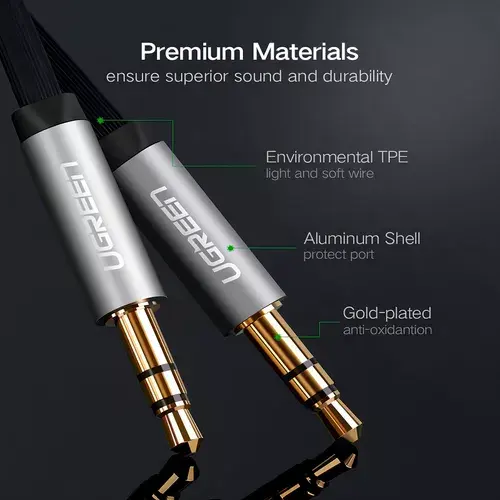 Cavo Ausiliario Piatto Ugreen 2m. Connettore da 3,5 mm a 3,5 mm nero
