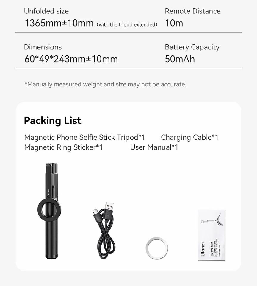 Product name:Ulanzi MG-003 Pro Magnetic Phone Selfie Stick Tripod 1.36m