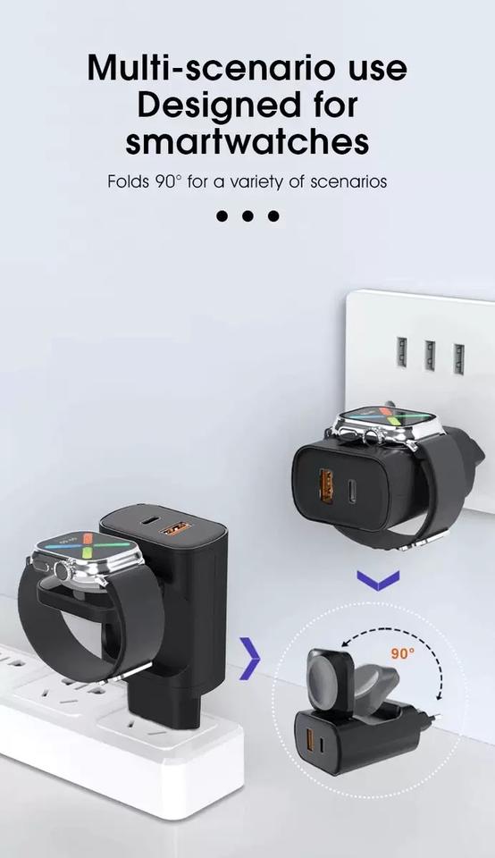 Caricabatterie USB Type-C 2-in-1 Ultra Portatile da 30W PD in Materiale GaN per Smartwatch Sportivi Compatibile con Samsung