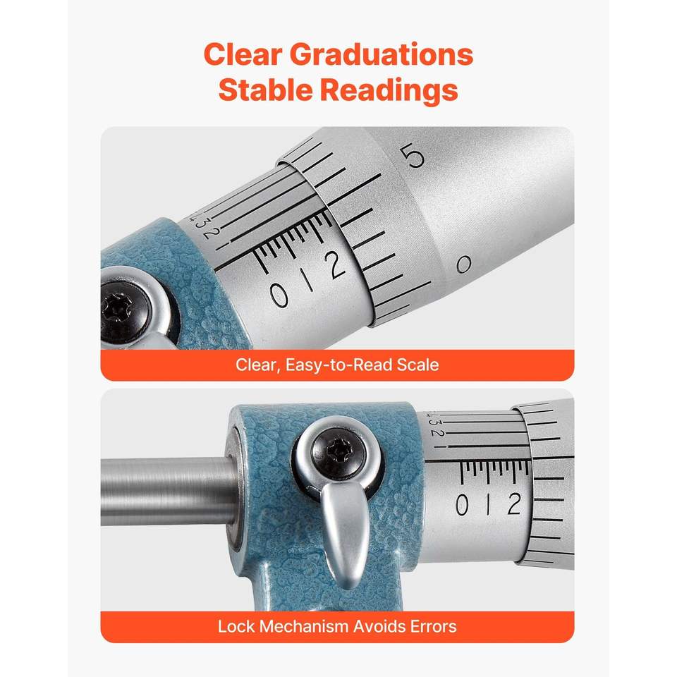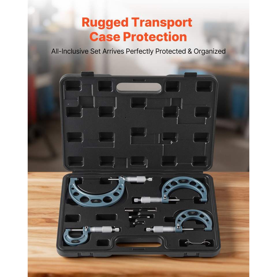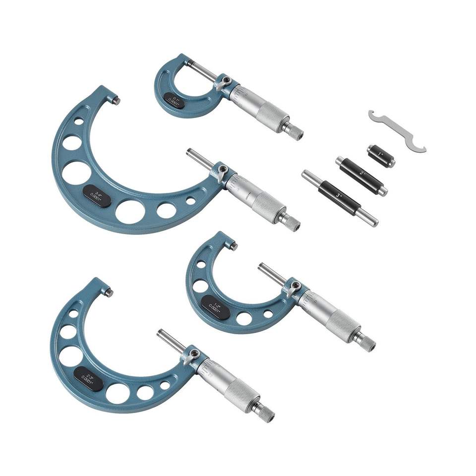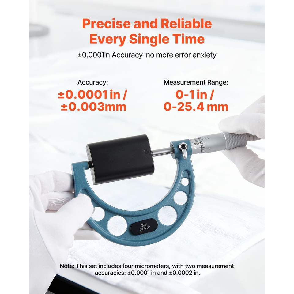 Set di Micrometri di Ultra Precisione 0.0001 per Meccanici, 4 Pezzi 0-1"/1-2"/2-3"/3-4", Professionale per Lavori di Precisione
