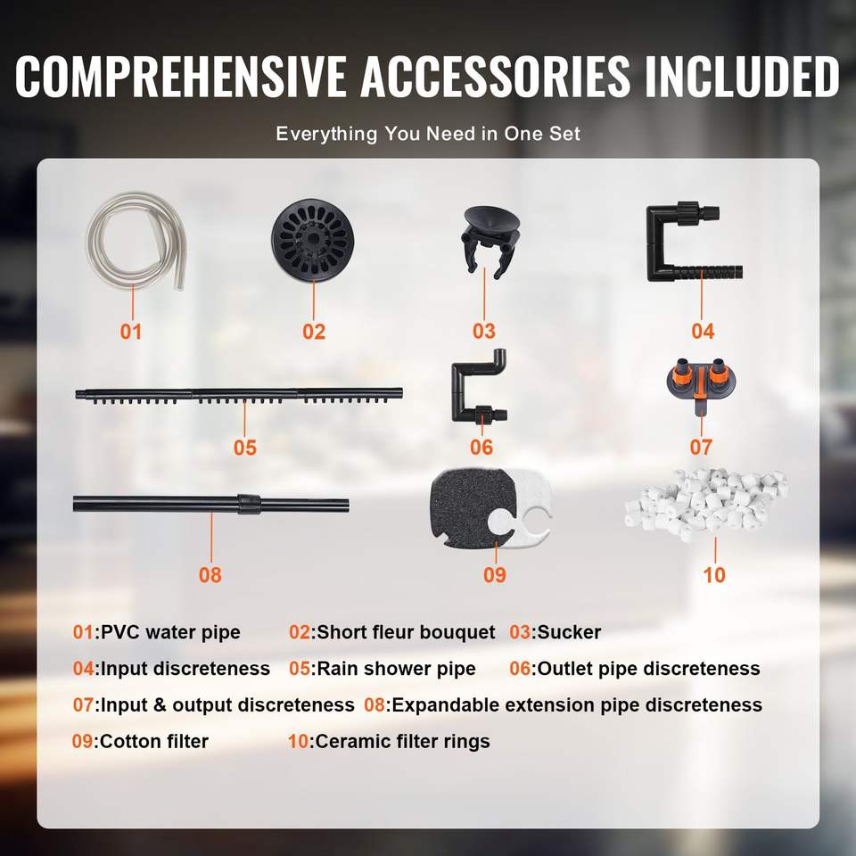 Filtro a Canister Ultra-Silenzioso da 172 GPH per Acquari da 30 Galloni, Interno con Protezione UV, Alimentatore Sommergibile, Accessorio per Acquario