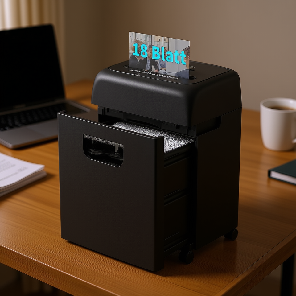 Distruggidocumenti Ultra Silenzioso per 18 Fogli, Taglio Incrociato, Contenitore da 5,28 Galloni, Nero, Livello di Sicurezza P4, per Casa e Ufficio