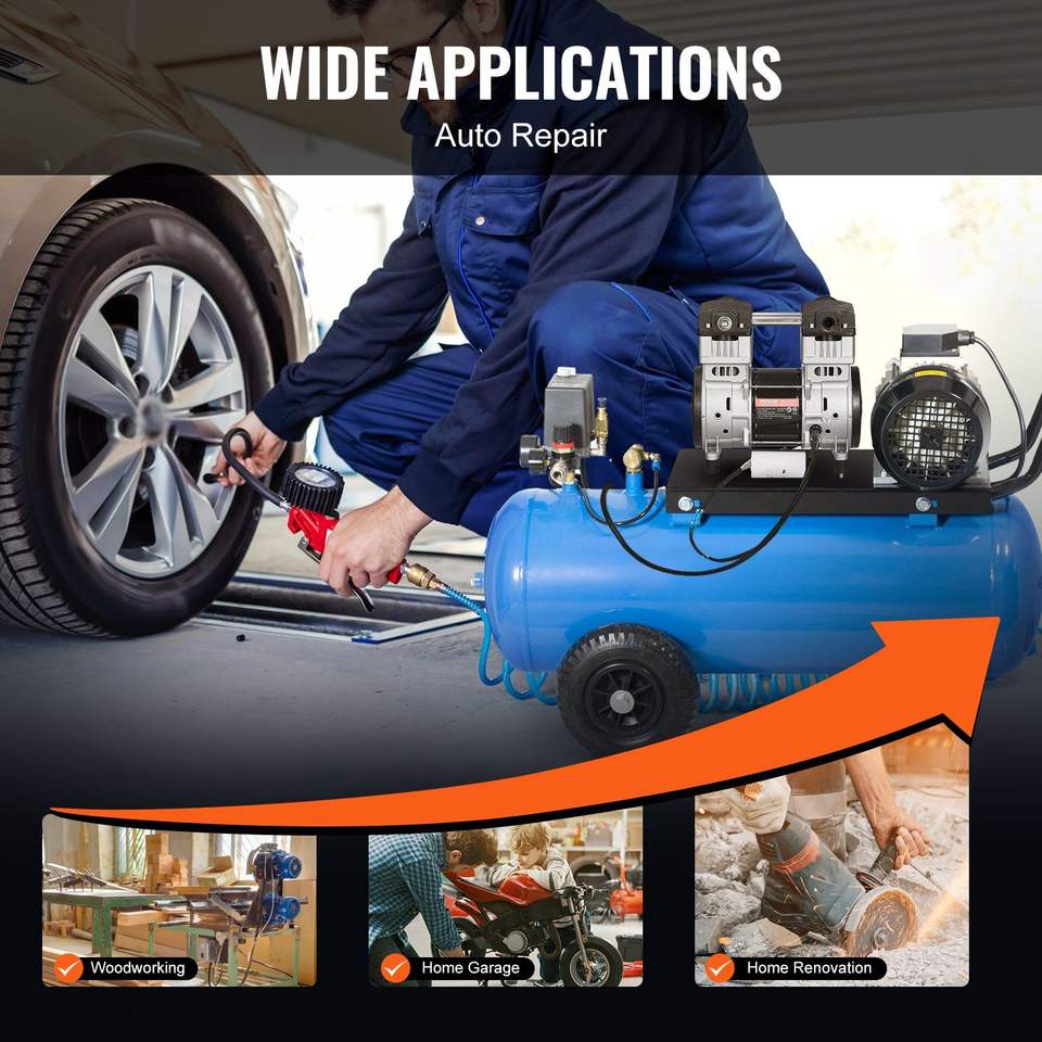 Compressore d'Aria Ultra-Silenzioso 2HP 5.2CFM Senza Olio con Pressione Massima 145PSI, Motore 78dB, Compressore d'Aria 90PSI