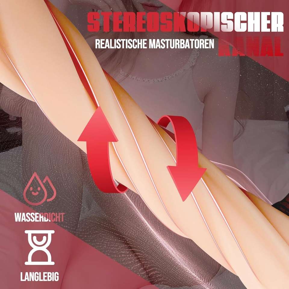 Masturbatore Maschile Ultra Realistico a Doppio Canale (Vagina e Ano) con Funzione a Pressione, Texture Realistica, 100% Impermeabile IPX7, Sex Toy per Uomini