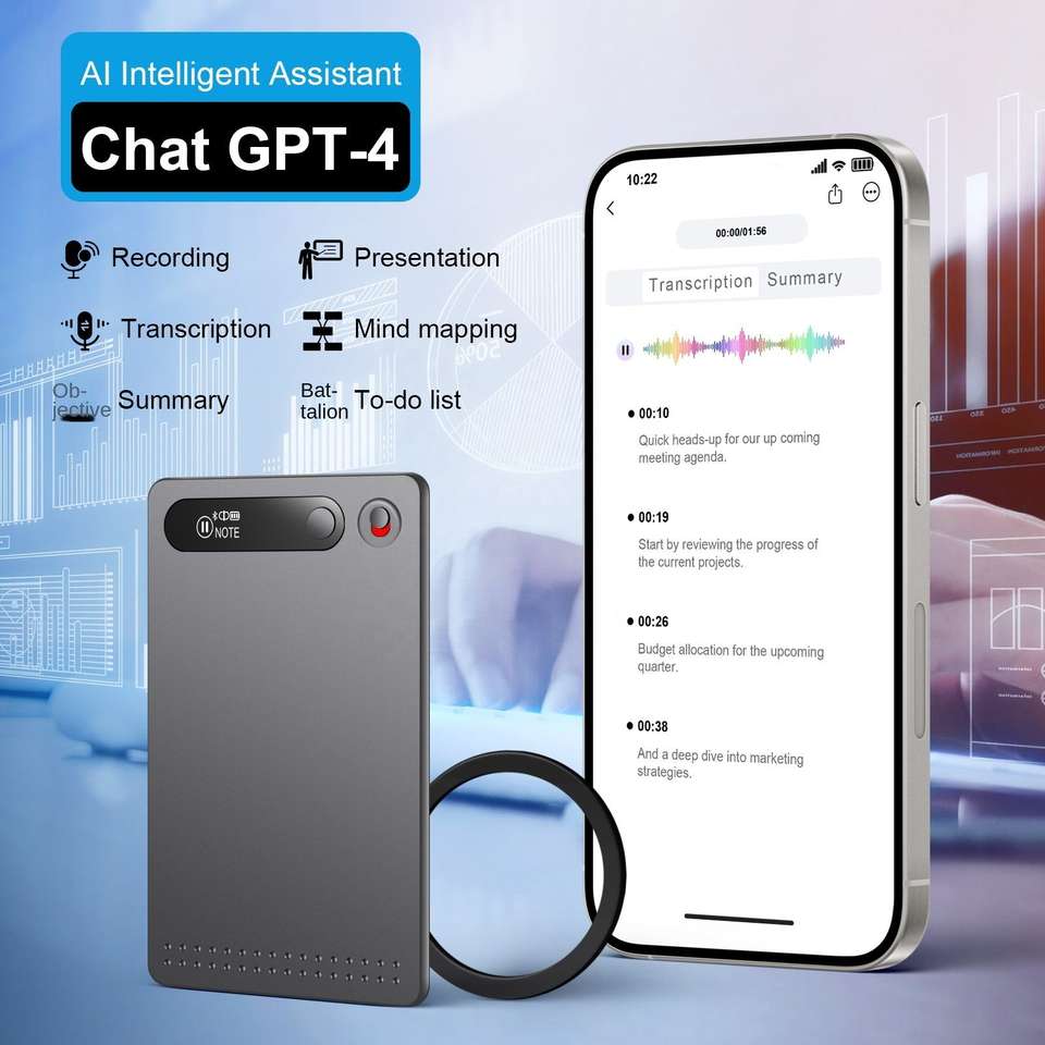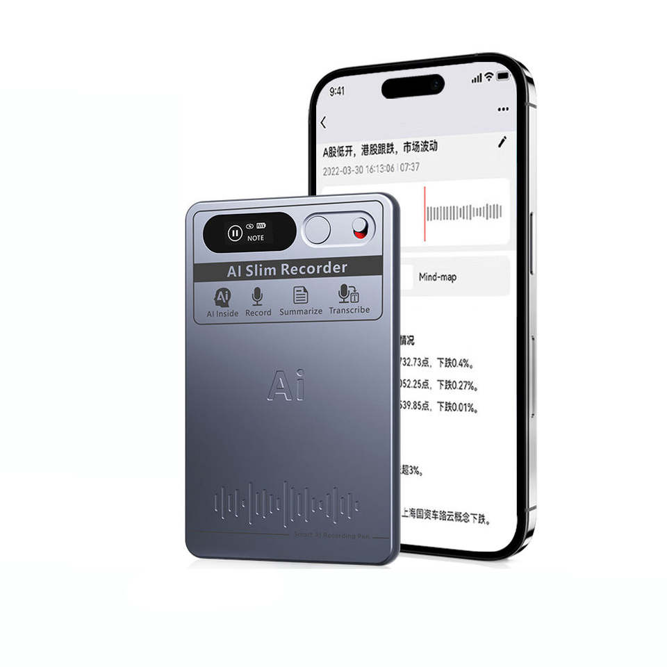 Registratore Vocale Digitale AI Ultra Sottile da 64GB con Custodia per Registrazioni Audio di Riunioni, Formato WAV, in Lega di Alluminio