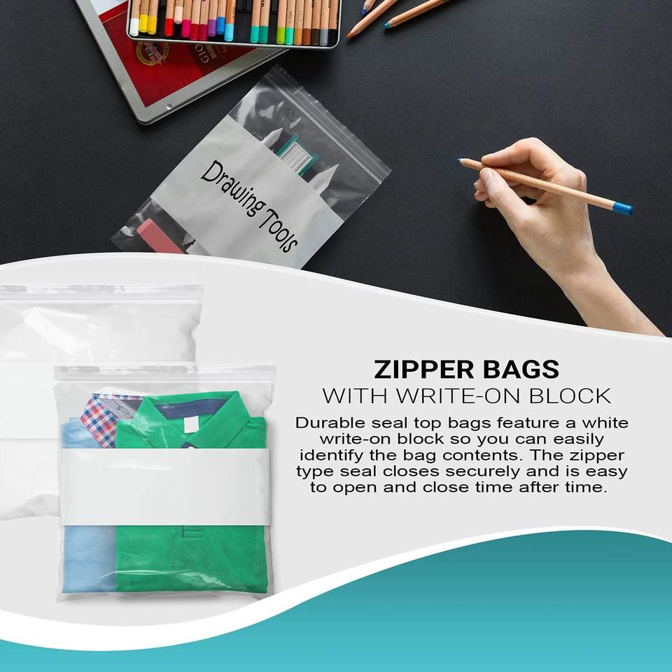 Spessi Ultra spessi 4 Mil bianco blocco borse con cerniera pacchetto 500 12x12 grande per il servizio di ristorazione industriale scrivere-su sacchetti poli per le pillole