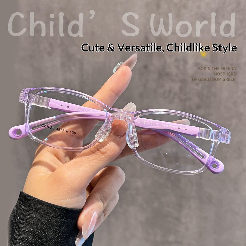 Montatura per Occhiali da Vista Ultra-leggera TR per Studenti e Bambini CZ1022, Stile Punk Quadrato per Ragazzi e Ragazze, Lenti AC, Nasello in Silicone Morbido
