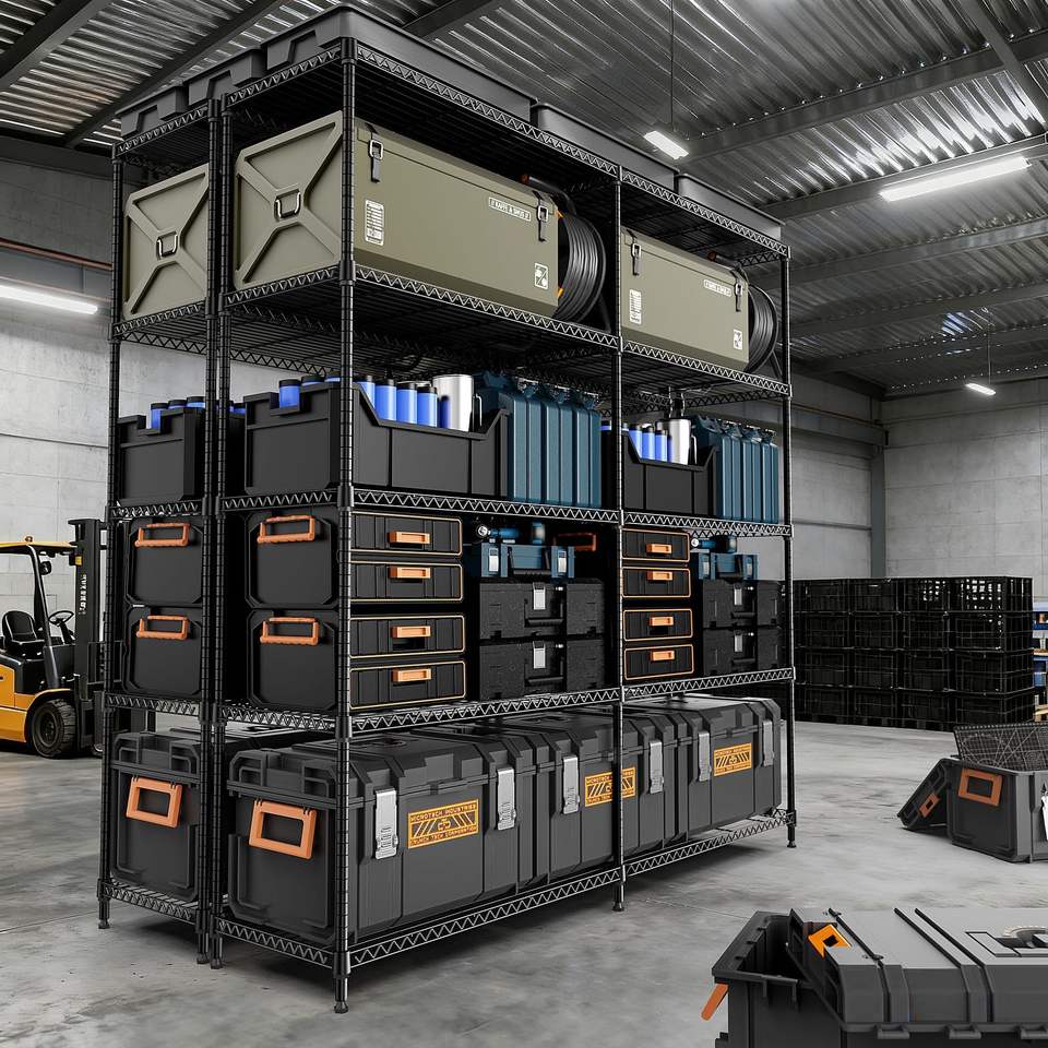 Scaffali in Metallo Ultra Resistenti a 5/4 Ripiani per Cucina/Garage, Capacità 1500/1200 LBS, Ripiani in Rete Regolabili a Doppia Fila, Durevoli