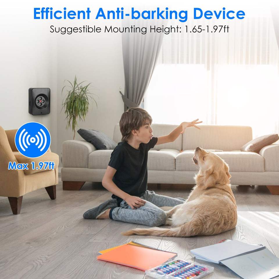Dispositivo Antiabbaio a Ultrasuoni per Uso Interno ed Esterno, 3 Livelli di Frequenza, Distanza di Rilevamento 10 Metri, Controllo Abbaiamento Altamente Sensibile