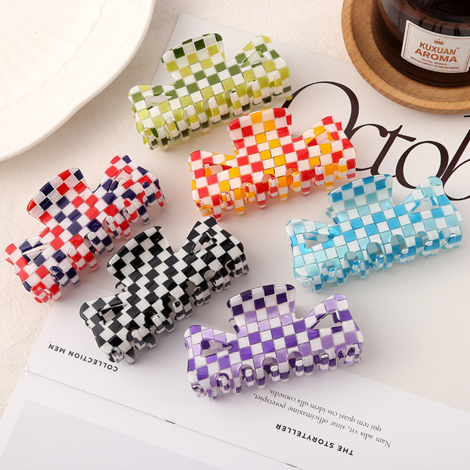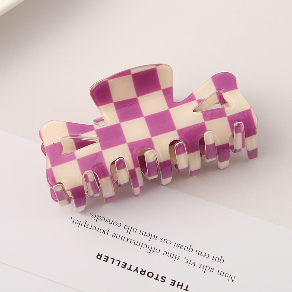 Ume OEM Kids Claw-shaped Clip | PVC Acetate Board Material + CE Certified | One-Sec Updo Styling Checkerboard Pattern | Daily
