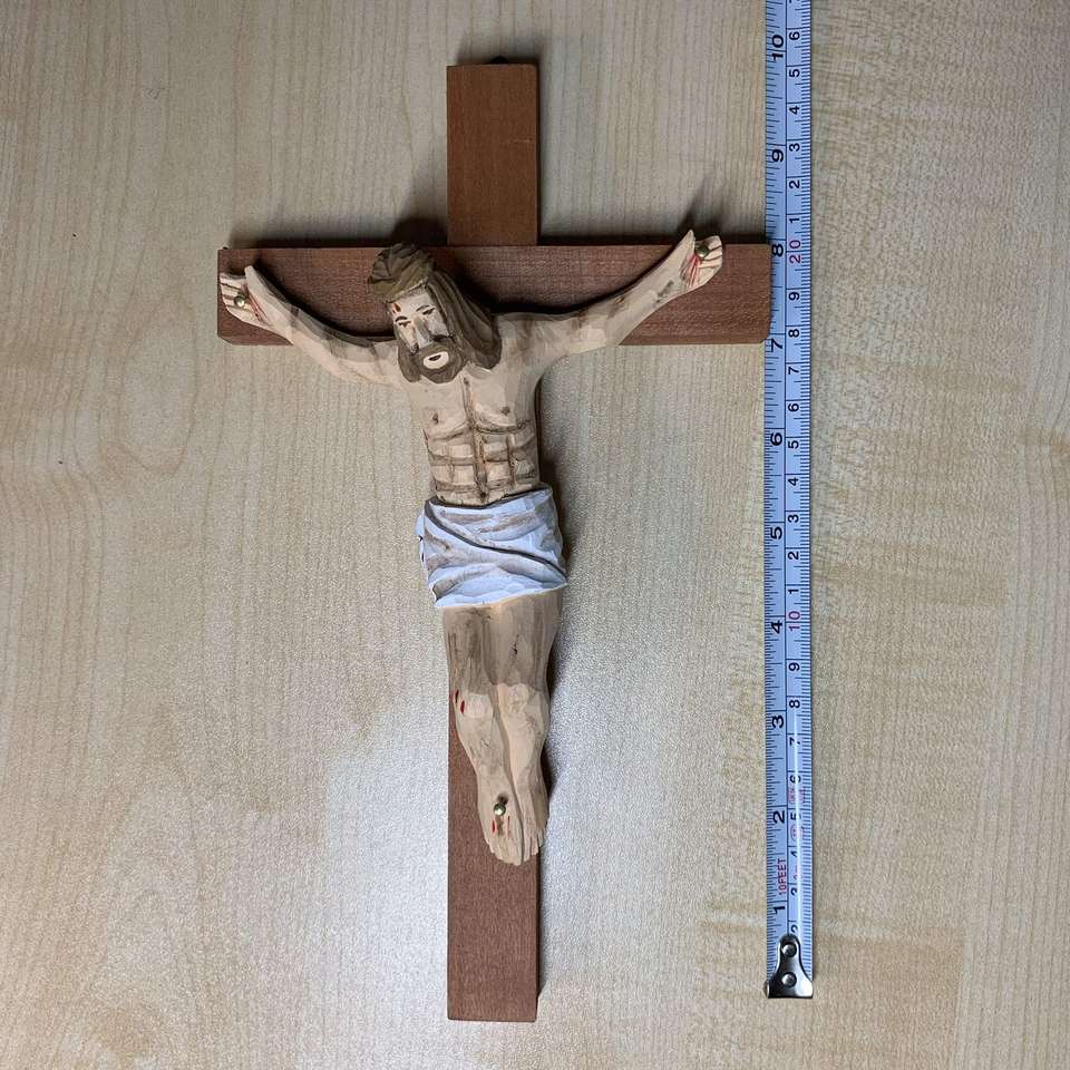 Unbranded Hand Carved Wooden Merry Jesus Crucifix Figurines Religious Christmas Supplies and Toys