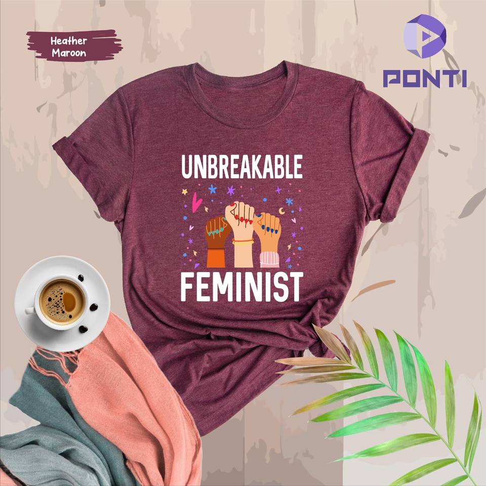 Unbreakable Feminist T-Shirt Women's Regular Fit Cotton Casual Crew Neck Short Sleeve All Seasons Printed Jersey Shirt