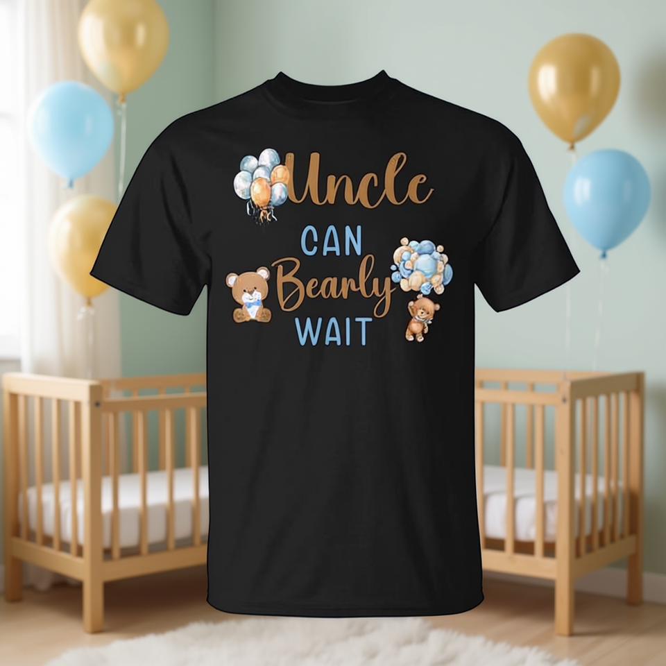Maglietta Unisex per Baby Shower 'Uncle Can Bearly Wait', Articolo Promozionale Omaggio