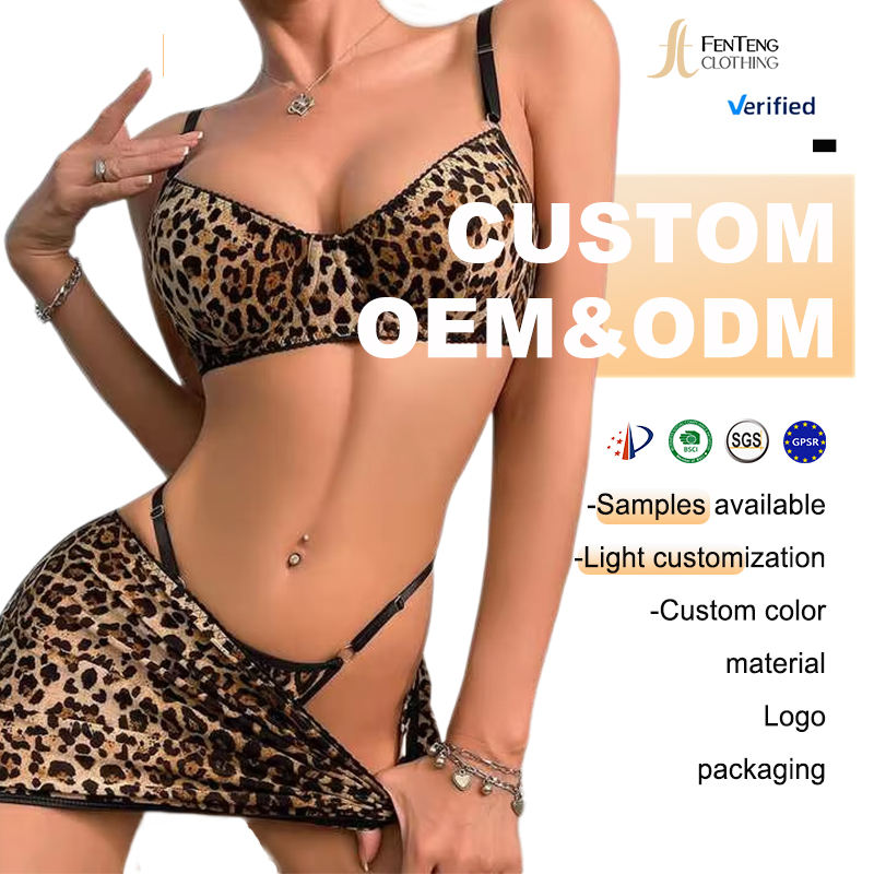 Set intimo in pizzo a tre punti con stampa leopardata Sexy con stampa leopardata a tre punti