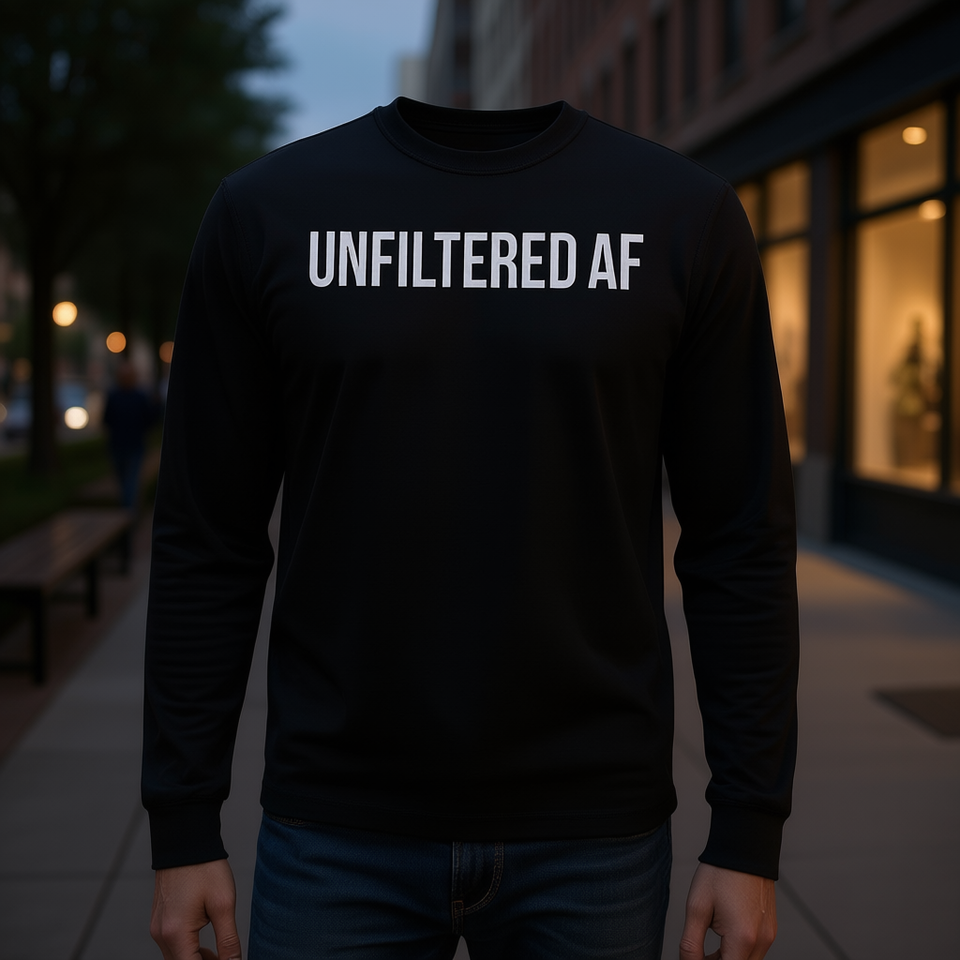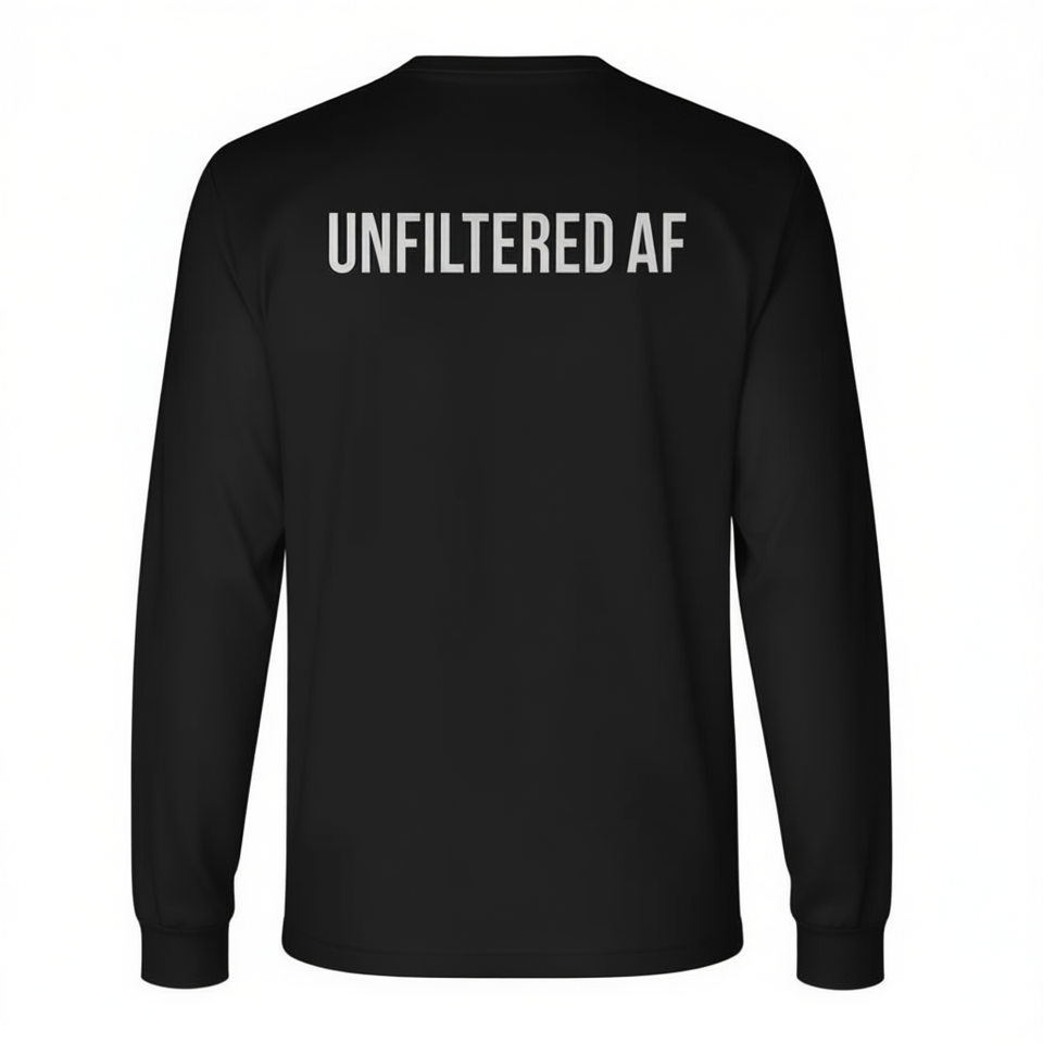 Maglietta a maniche lunghe Unfiltered Af nera con scollo rotondo, taglia adulto media