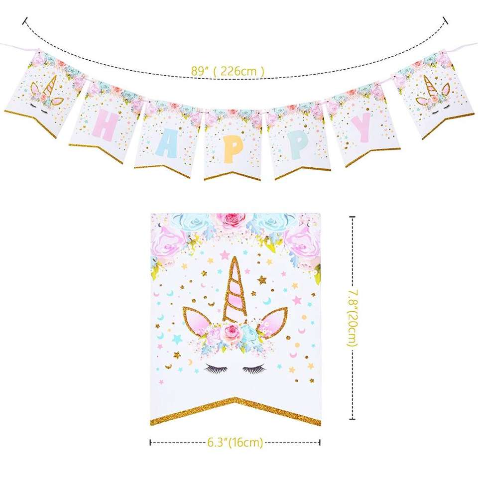 Unicorn Party Supplies Unicorn Birthday Party Decorations With Birthday Banner Unicorn Balloons Cake Topper Cake Cutter Candles